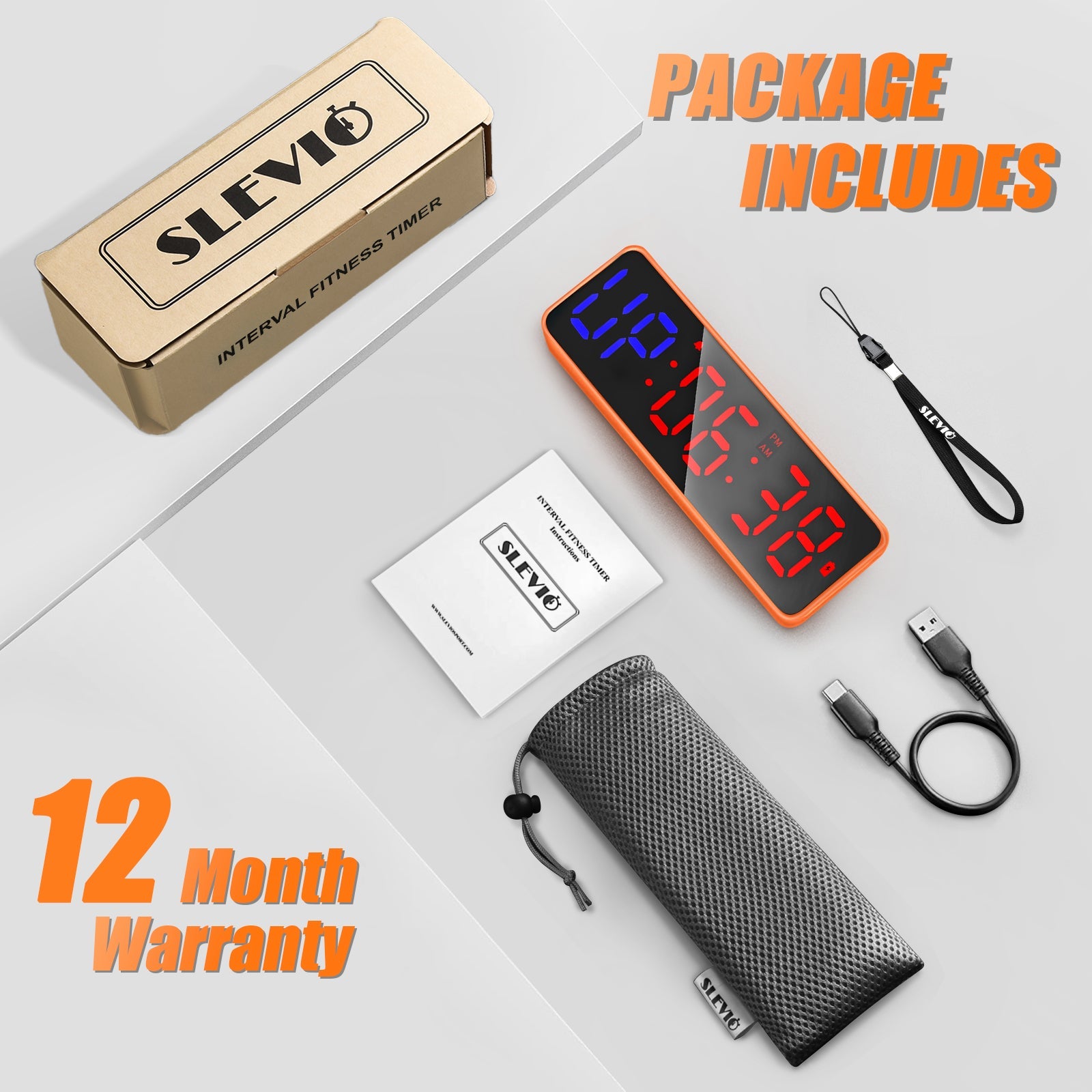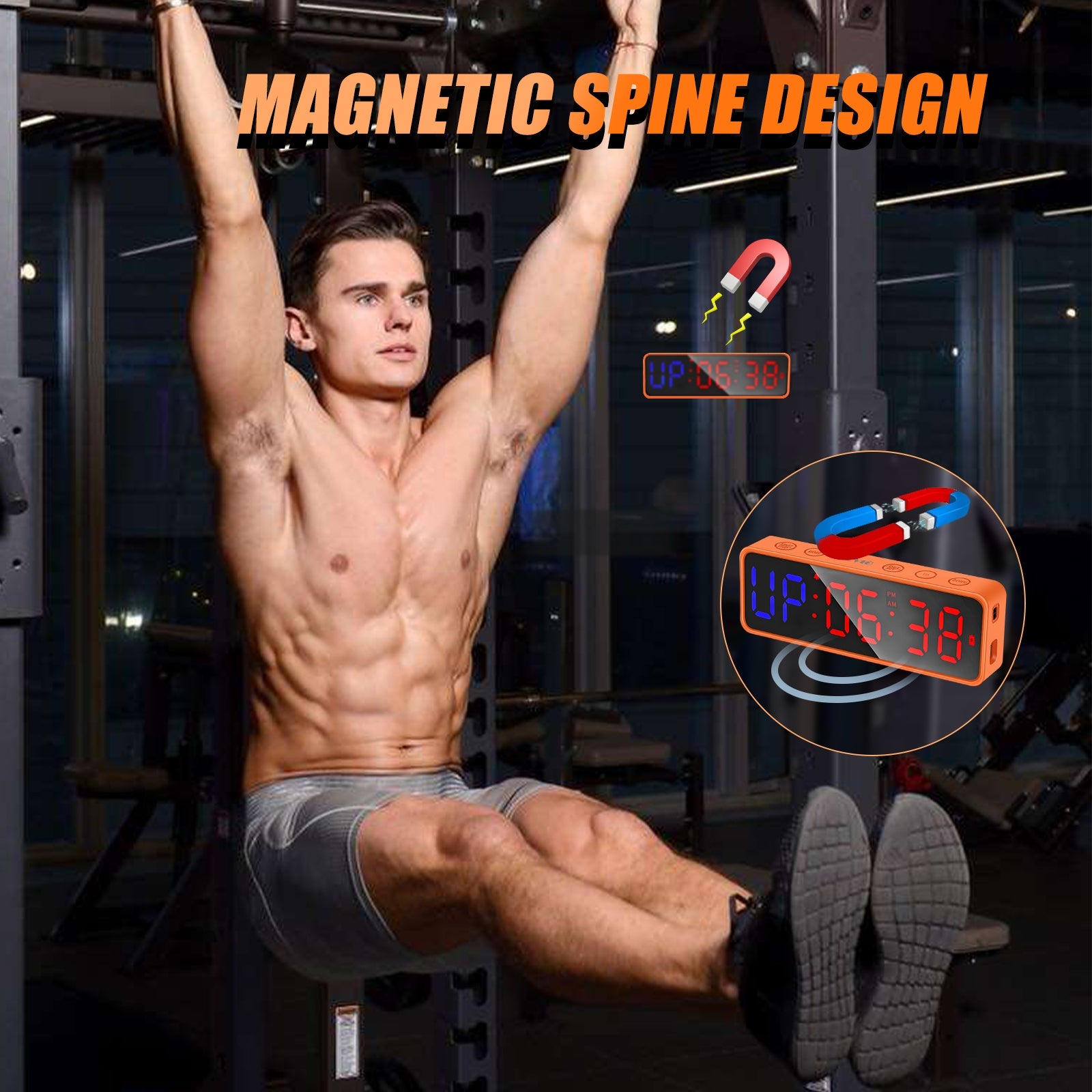 SLEVIO Portable Gym Timer, Fitness Timer Clock with Built-in Powerful Magnet(Orange)